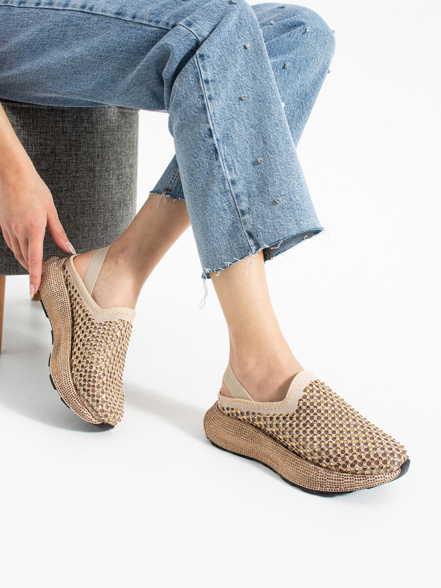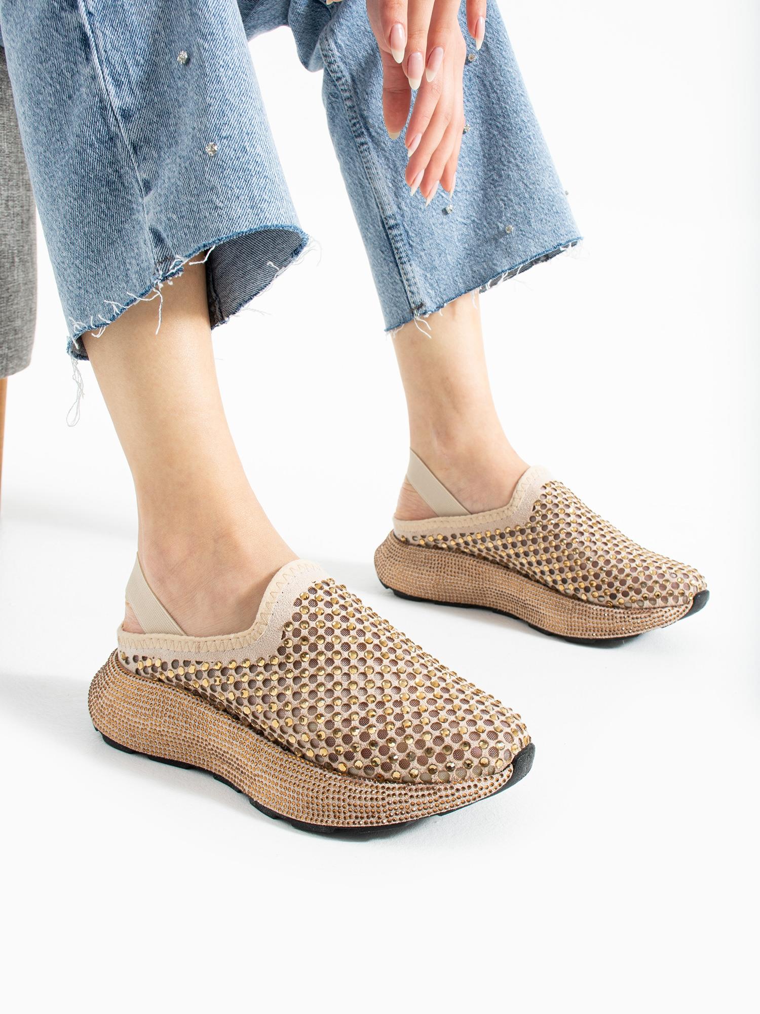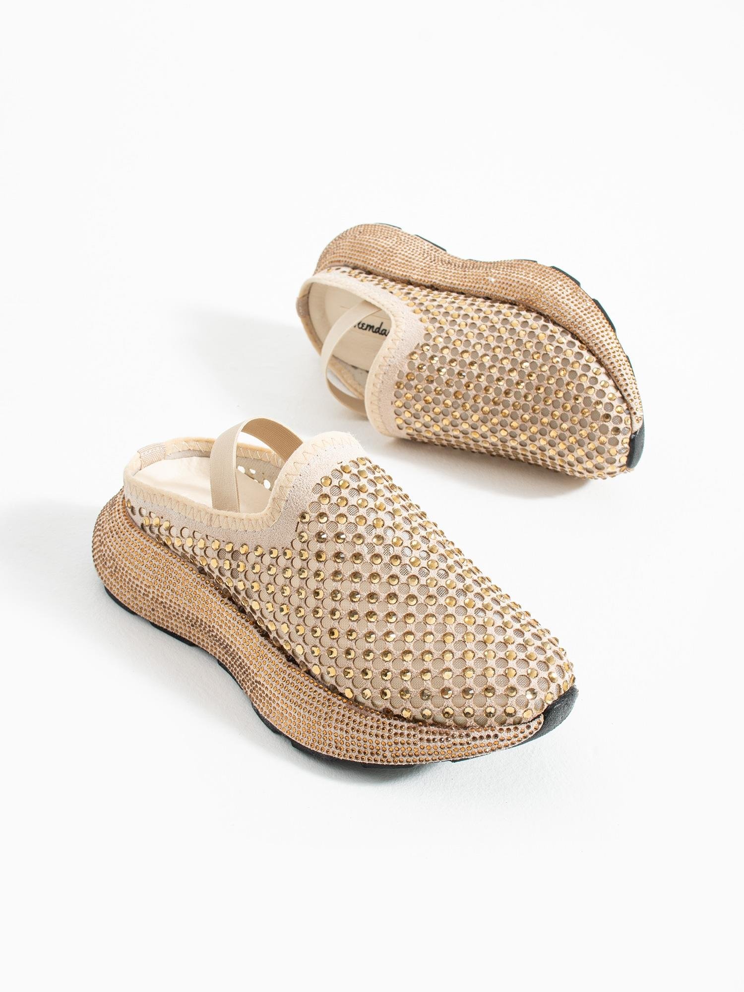 Işıltılı taş detayları ve modern tasarımıyla bu sneaker terlik, şıklığı ve konforu bir arada sunarak gün boyu dikkat çeken bir stil yaratır.