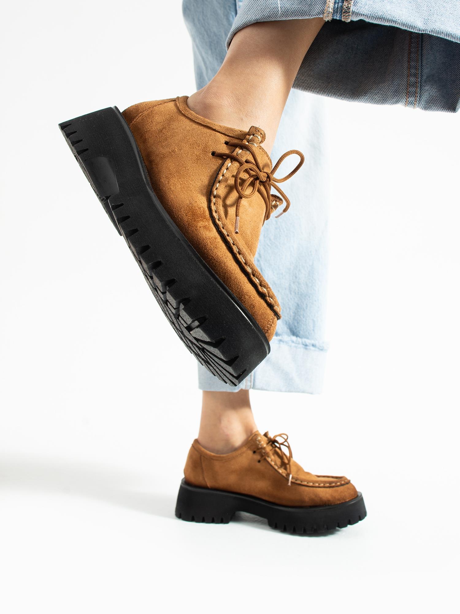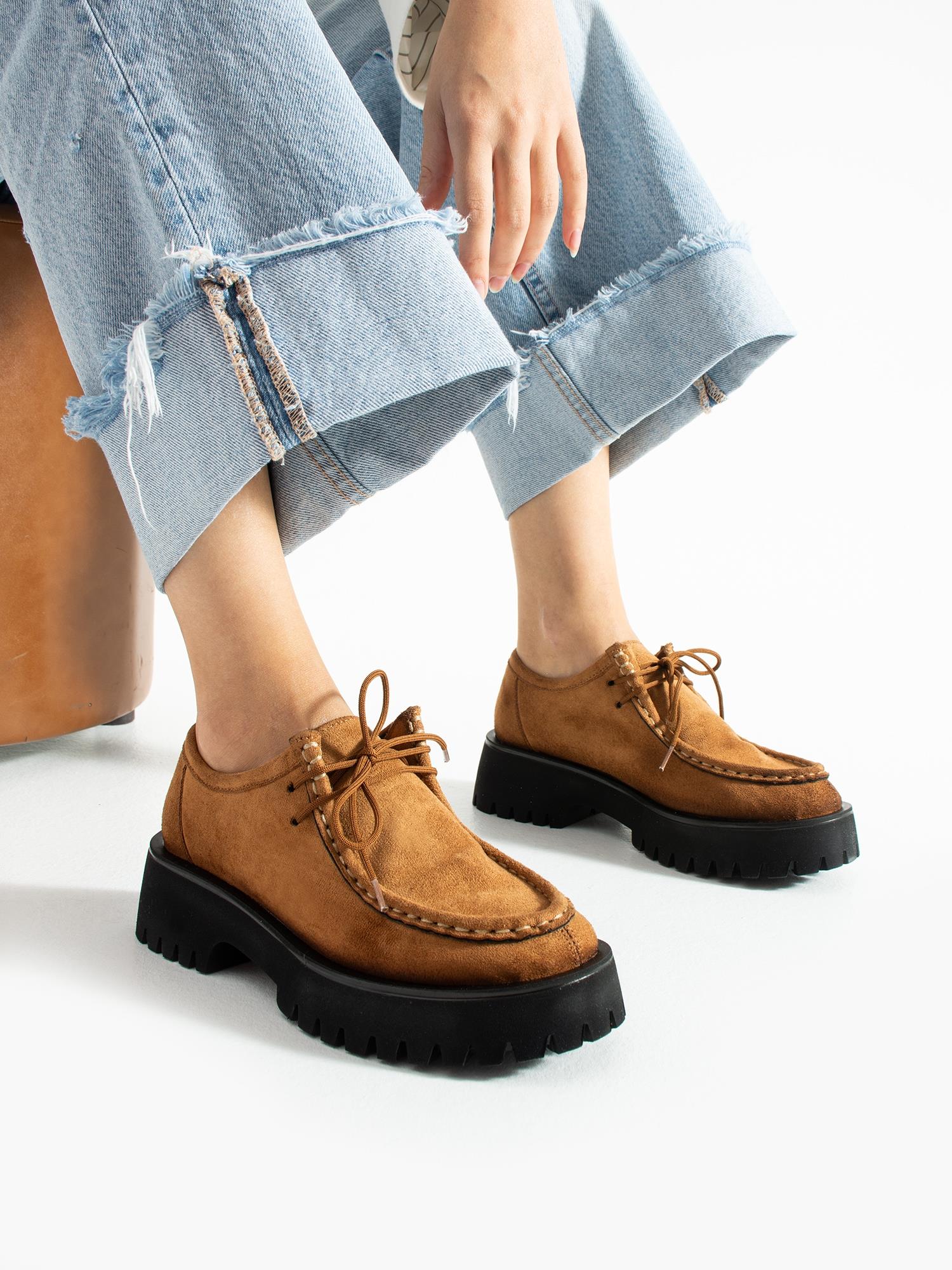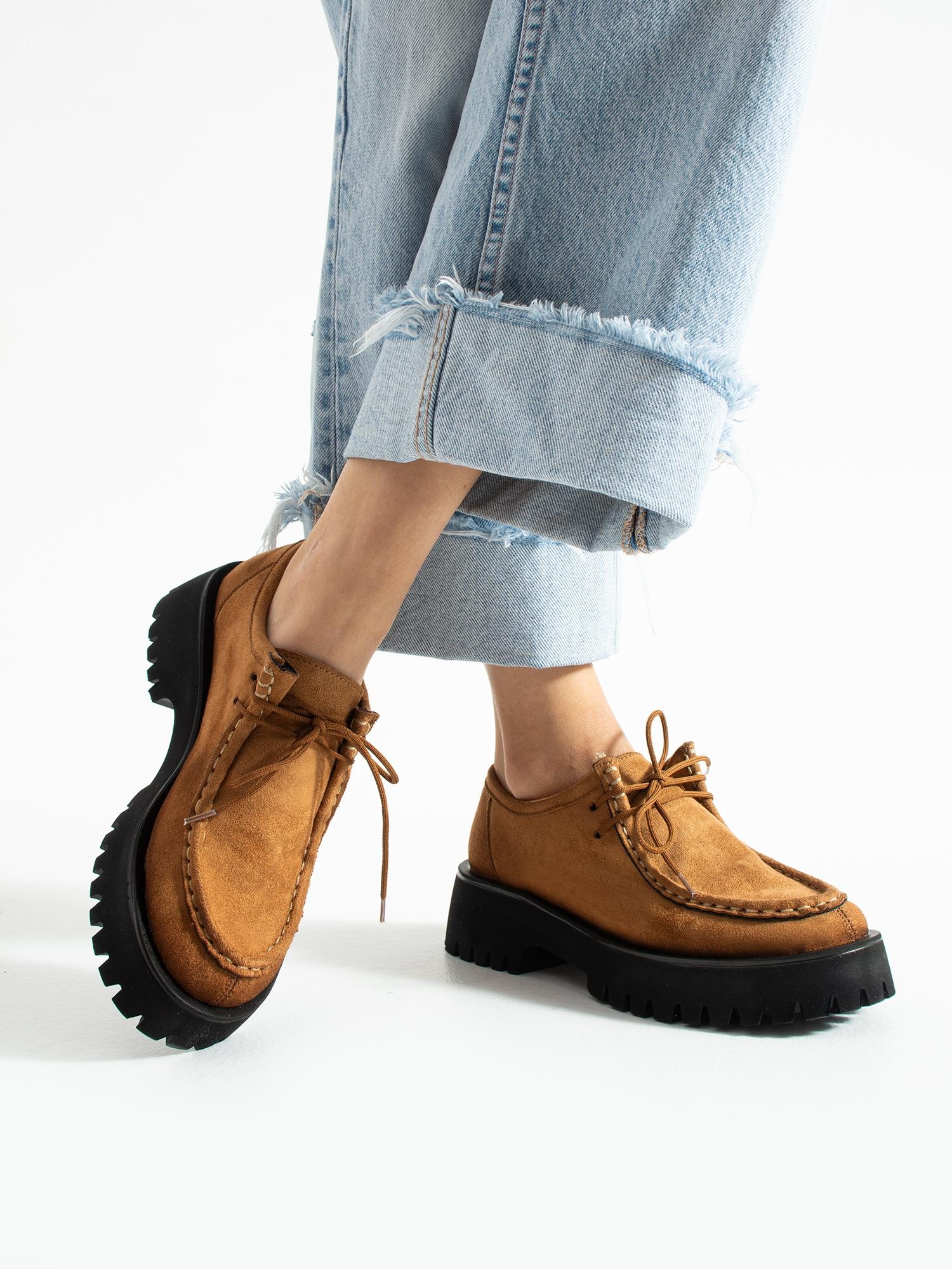 Kalın dişli tabanı ve rahat süet yapısıyla şıklığı tamamlayan kadın günlük ayakkabı. Siyah ve kahverengi seçenekleriyle her kombine uyum sağlar