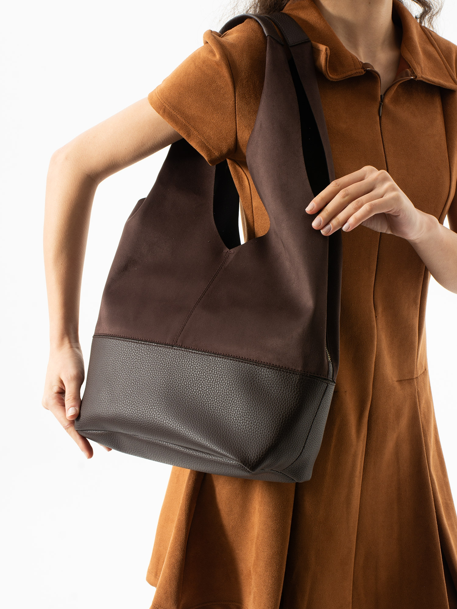 Zarif tasarımı ve fonksiyonel yapısıyla günlük şıklığın vazgeçilmez parçası. Süet dokulu gövdesi ve dayanıklı deri detaylarıyla hem şehir hayatına hem de ofis stiline kusursuz uyum sağlar. Geniş iç hacmi sayesinde günlük ihtiyaçlarınızı rahatça taşırken, ayarlanabilir askısı ile el çantası ve omuz çantası olarak çok yönlü kullanım sunar.