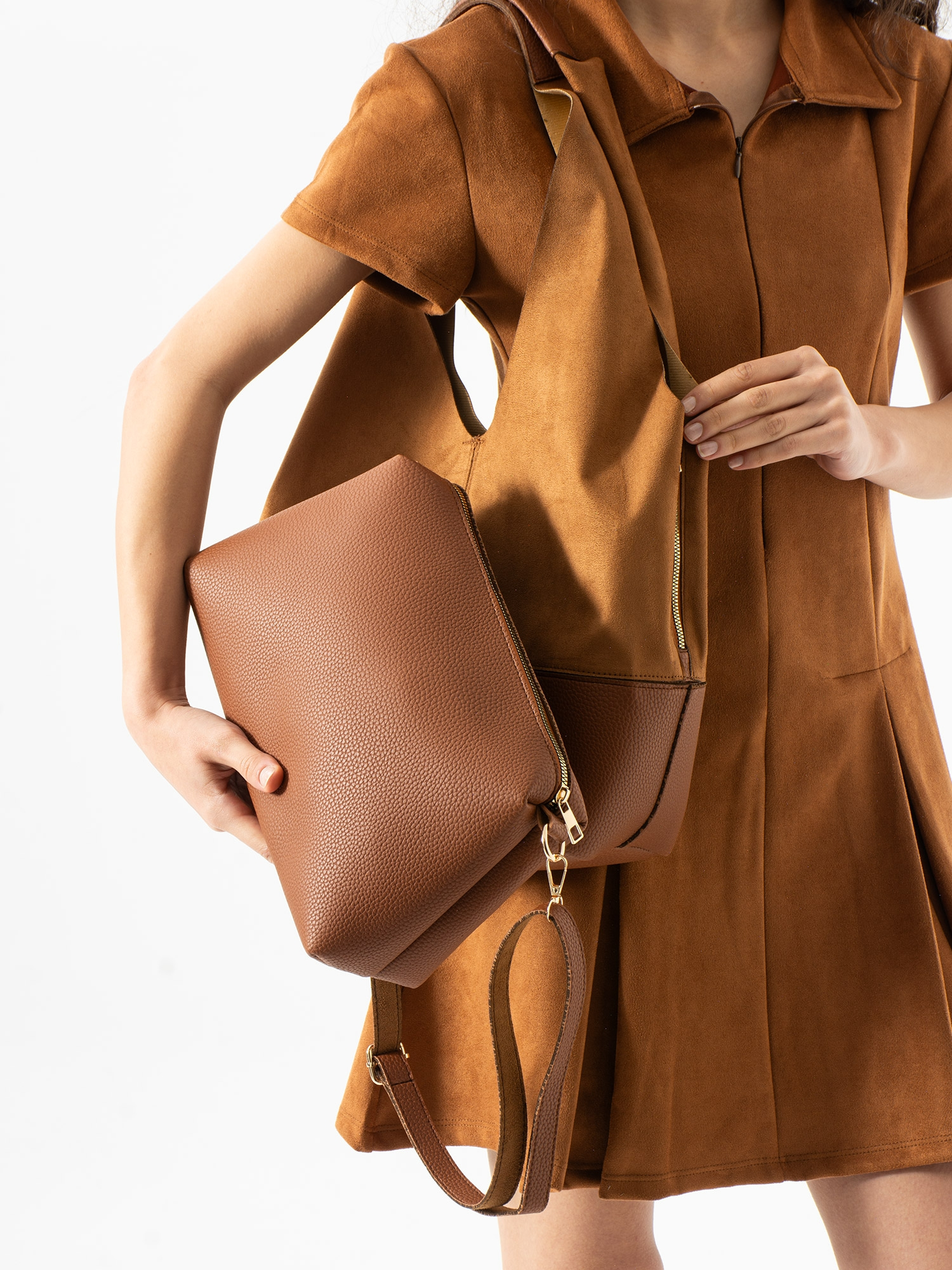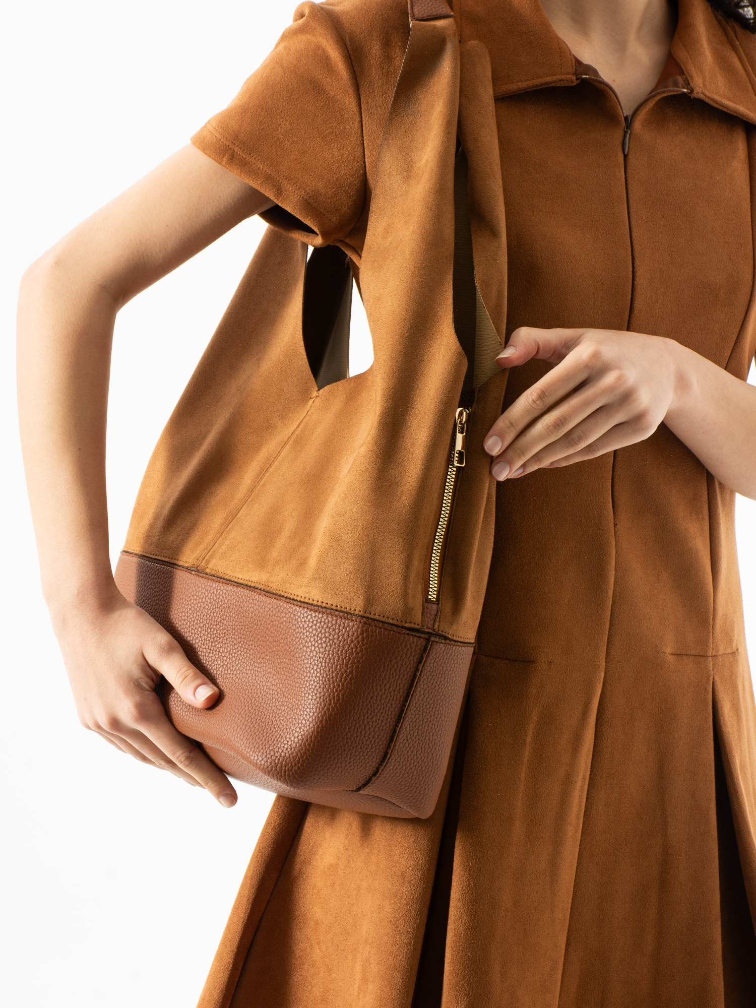Zarif tasarımı ve fonksiyonel yapısıyla günlük şıklığın vazgeçilmez parçası. Süet dokulu gövdesi ve dayanıklı deri detaylarıyla hem şehir hayatına hem de ofis stiline kusursuz uyum sağlar. Geniş iç hacmi sayesinde günlük ihtiyaçlarınızı rahatça taşırken, ayarlanabilir askısı ile el çantası ve omuz çantası olarak çok yönlü kullanım sunar.