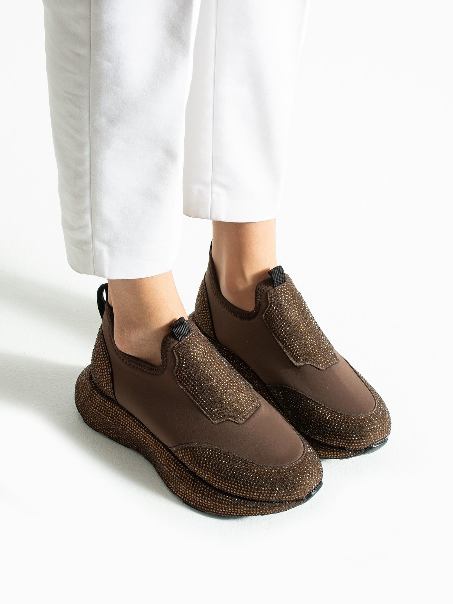 Taşlı ve desenli tasarımıyla dikkat çeken slip-on spor ayakkabılar, esnek yapısı ve kalın tabanıyla hem konfor hem şıklık sunuyor. Günlük stilin yıldızı!