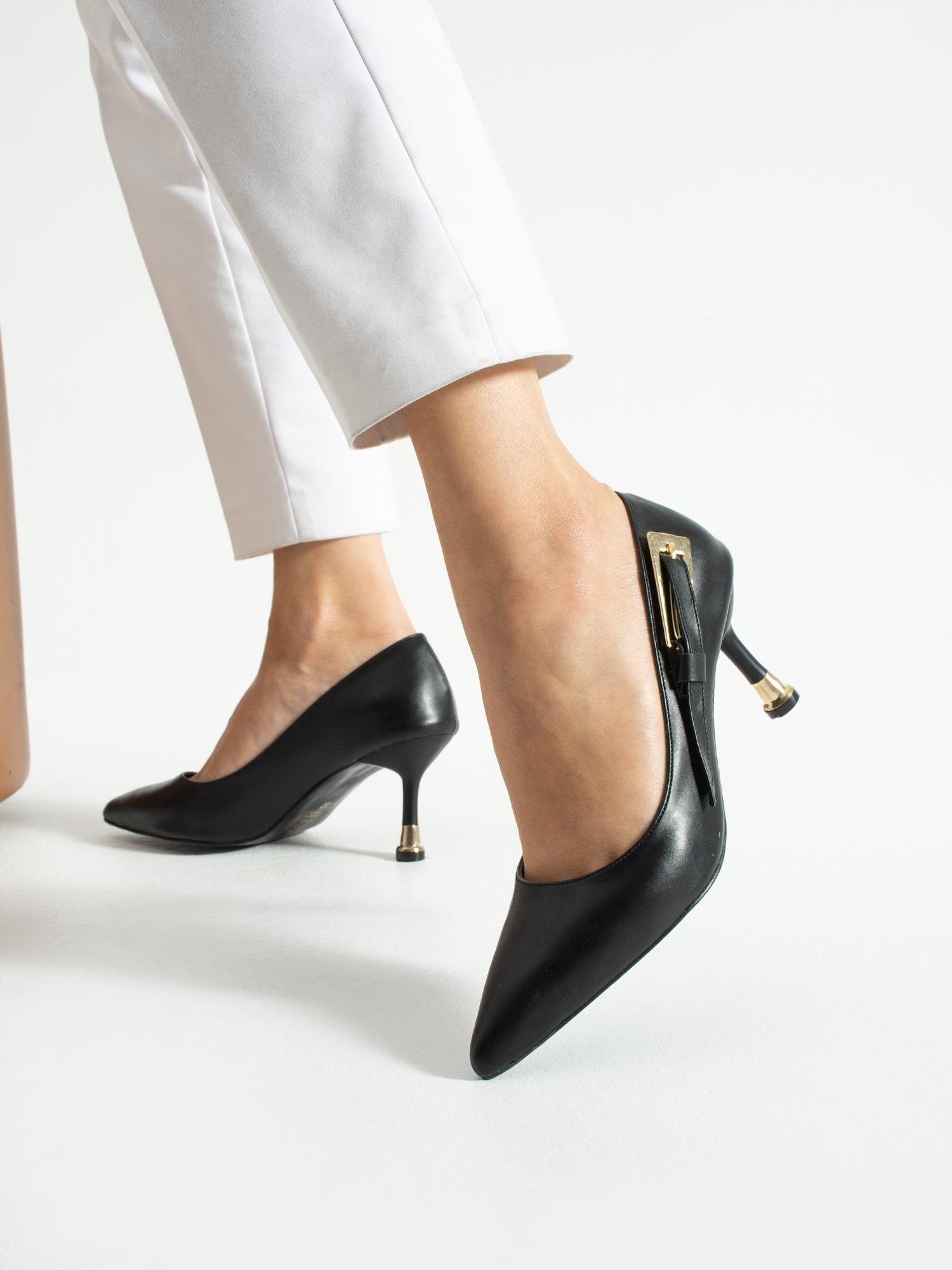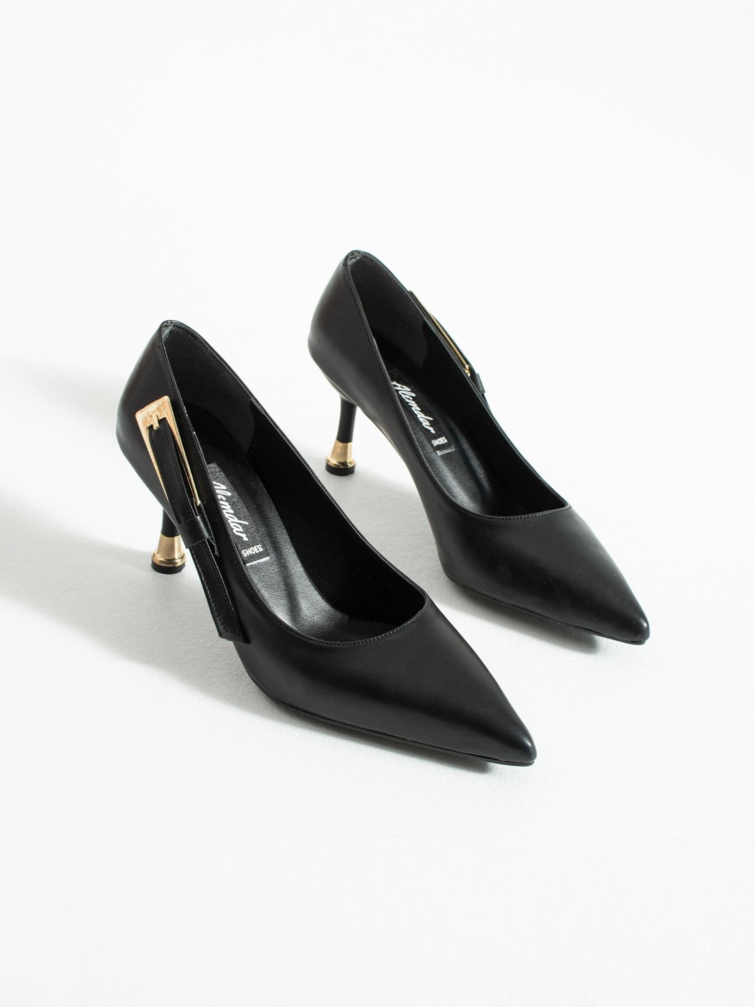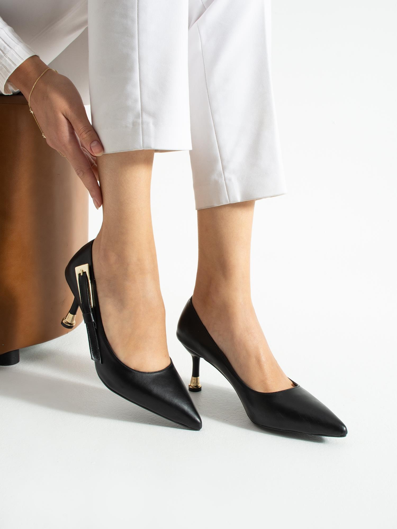 Modern ve zarif tasarımıyla öne çıkan bu topuklu ayakkabı, altın detaylı topuğu ve şık tokasıyla özel davetlerden günlük kombinlerinize kadar her anınıza uyum sağlar. Rahat kalıbı sayesinde gün boyu konfor sunarken, sofistike görünümüyle tarzınıza kusursuz bir dokunuş katar