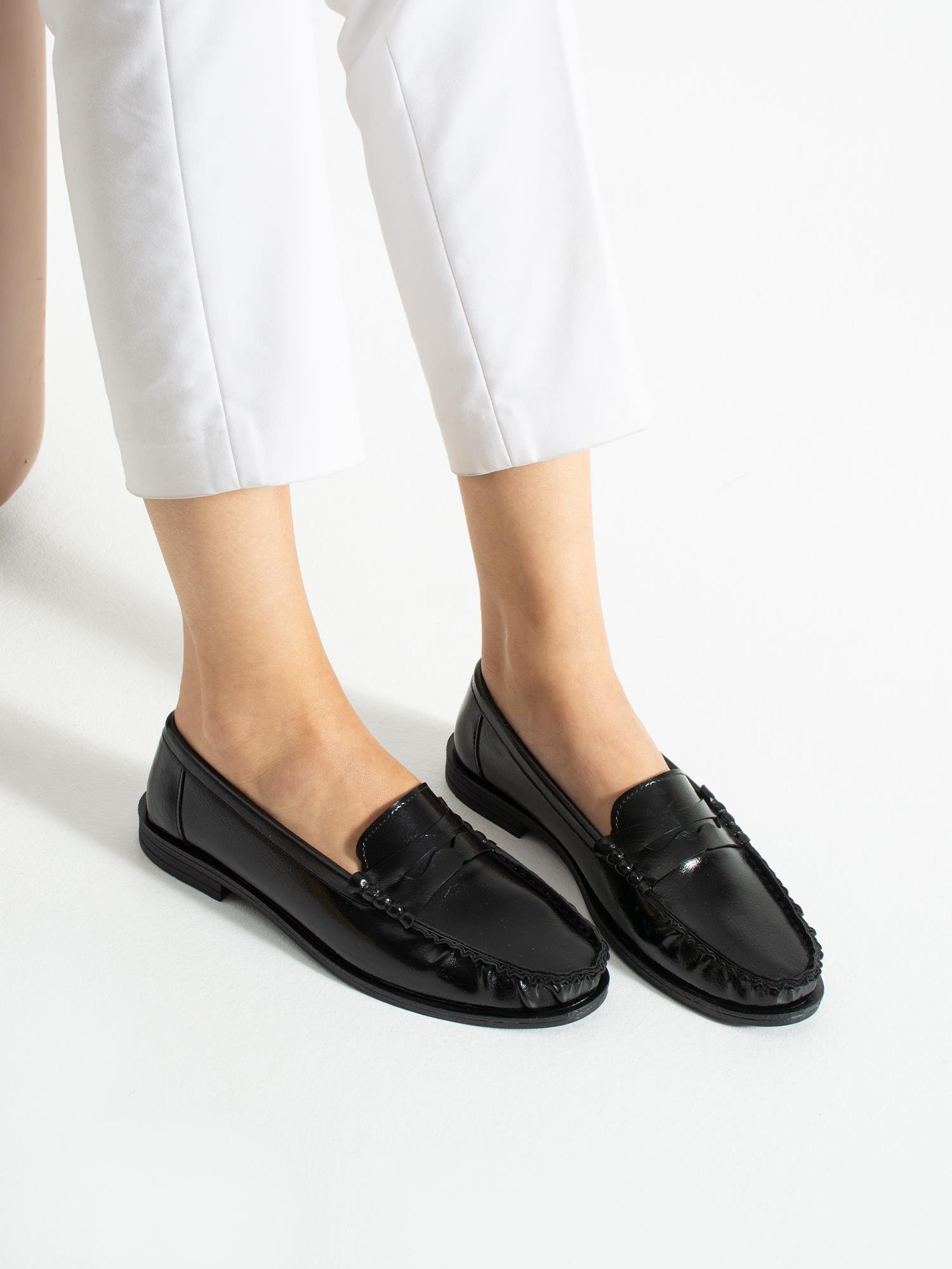 Şık tasarımlı kadın loafer modeli; parlak yüzeyi, rahat tabanı ve klasik çizgisiyle günlük kombinlere zarif bir dokunuş katar. Modern, konforlu, stil sahibi