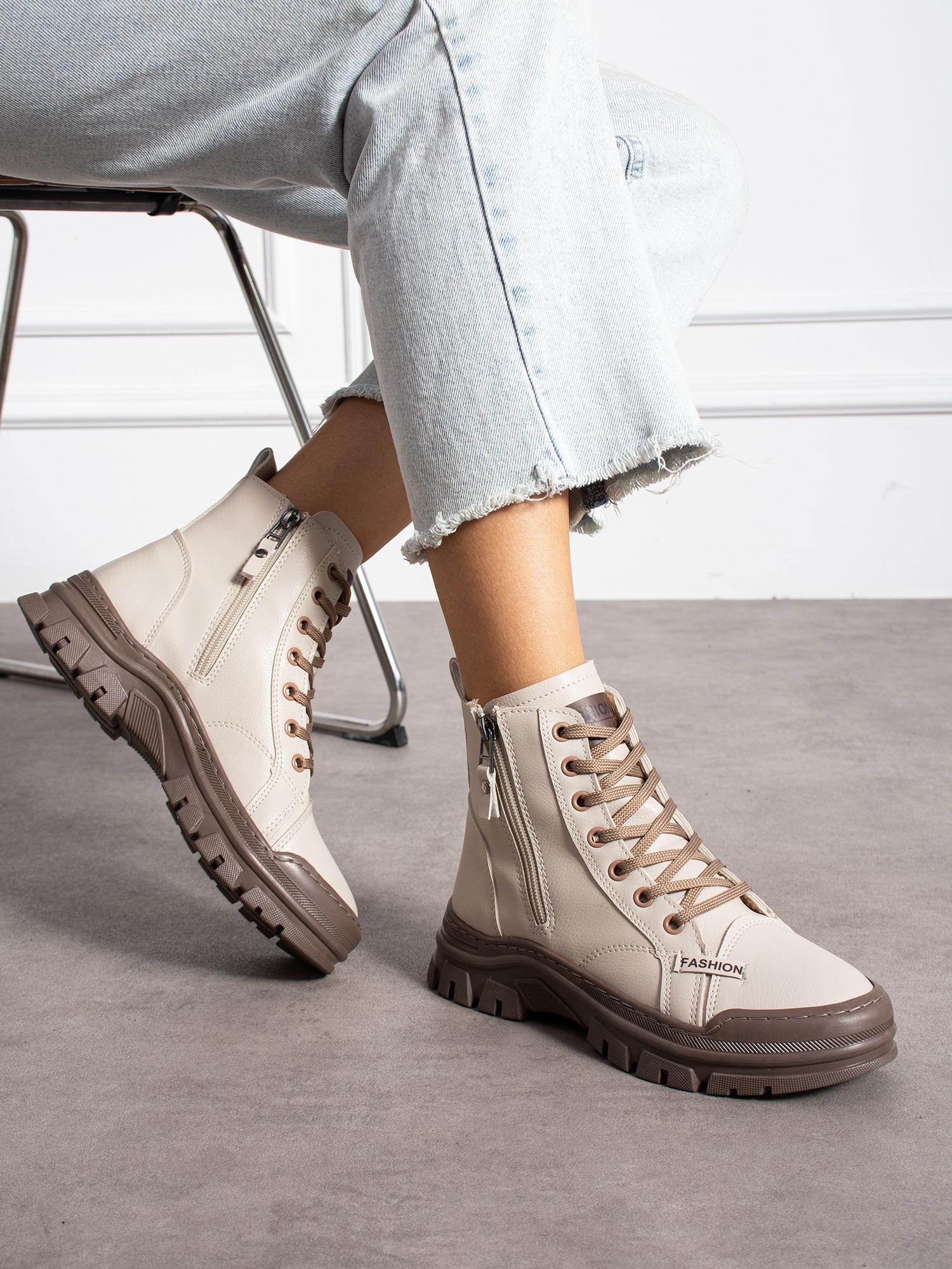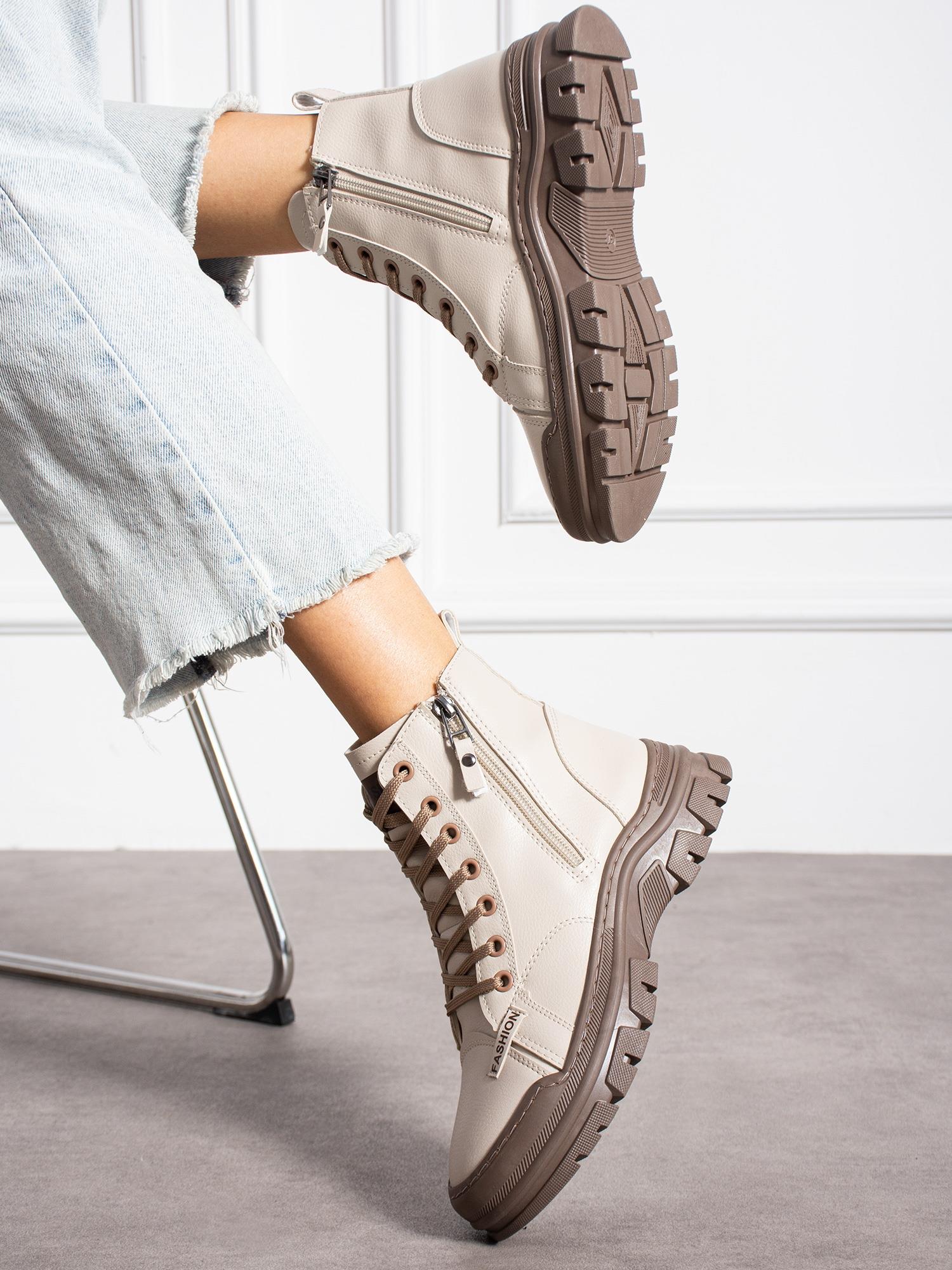 FEMME Krem Fermuar Detaylı Kadın Bot (FEMME-KREM)