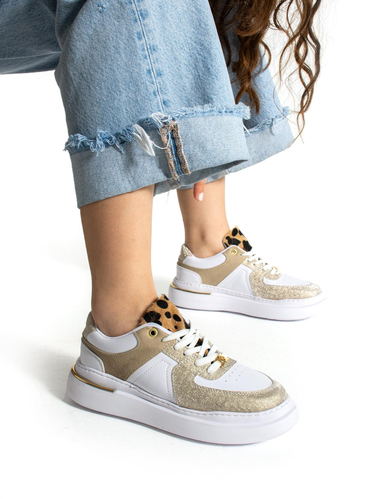 GLİNT Beyaz Gold Simli Kadın Sneakers (GLİNT-BYZGOLD)