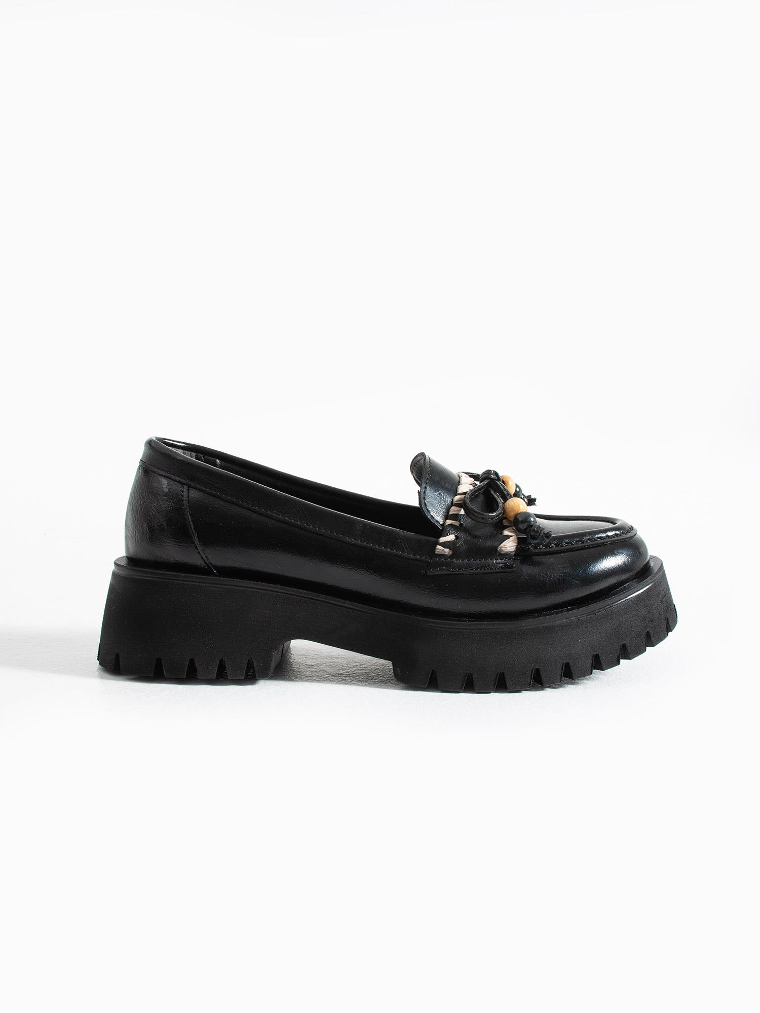 Bohem detaylarıyla öne çıkan rugan loafer, örgü ve boncuk süslemeleriyle sokak modasına güçlü bir imza atıyor. Sezonun trend parçası.