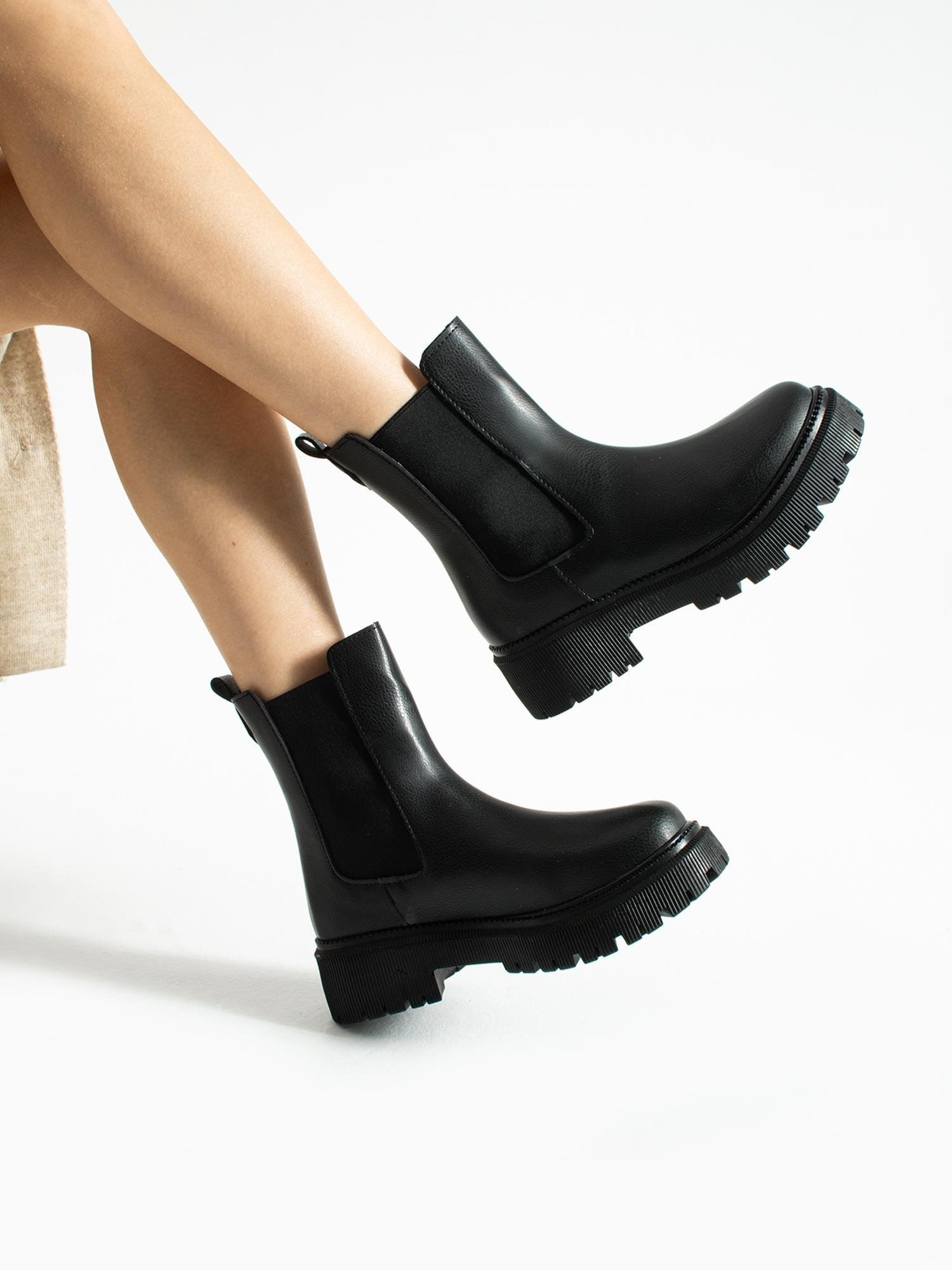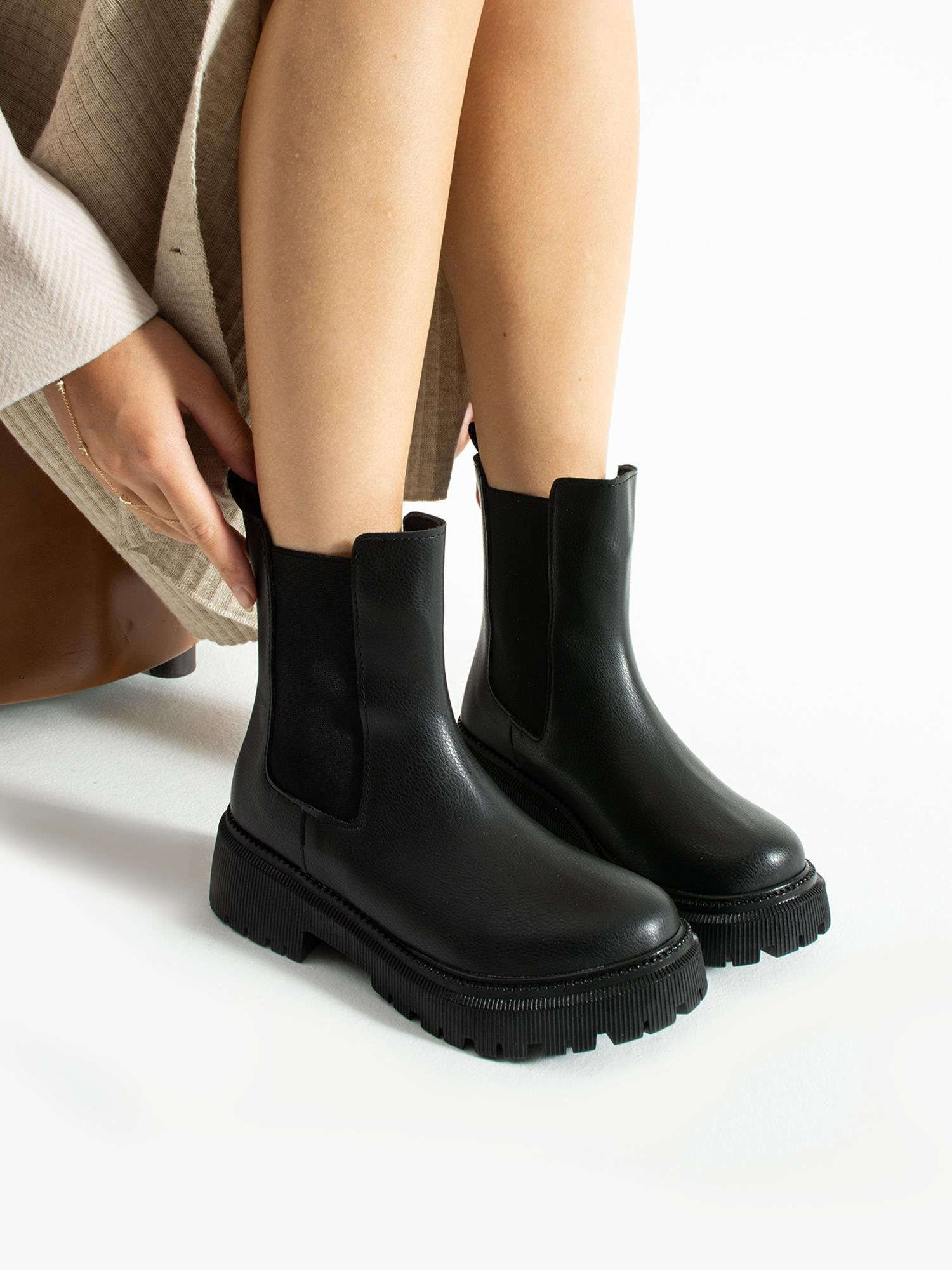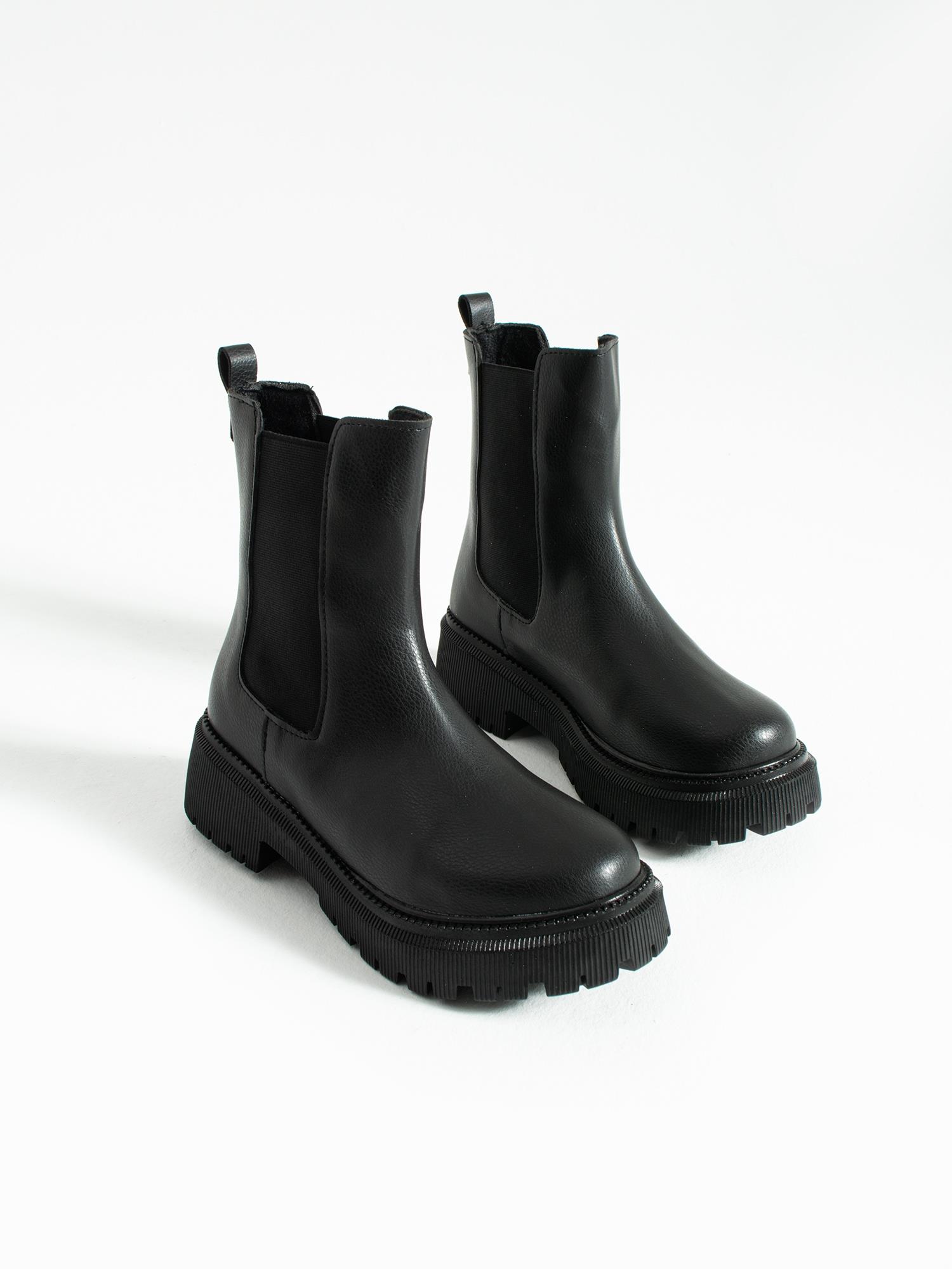 Şık ve dayanıklı Chelsea bot. Kalın tabanıyla konforlu yürüyüş, esnek yan lastik detayıyla kolay giyim. Günlük stilinize modern şıklık katar