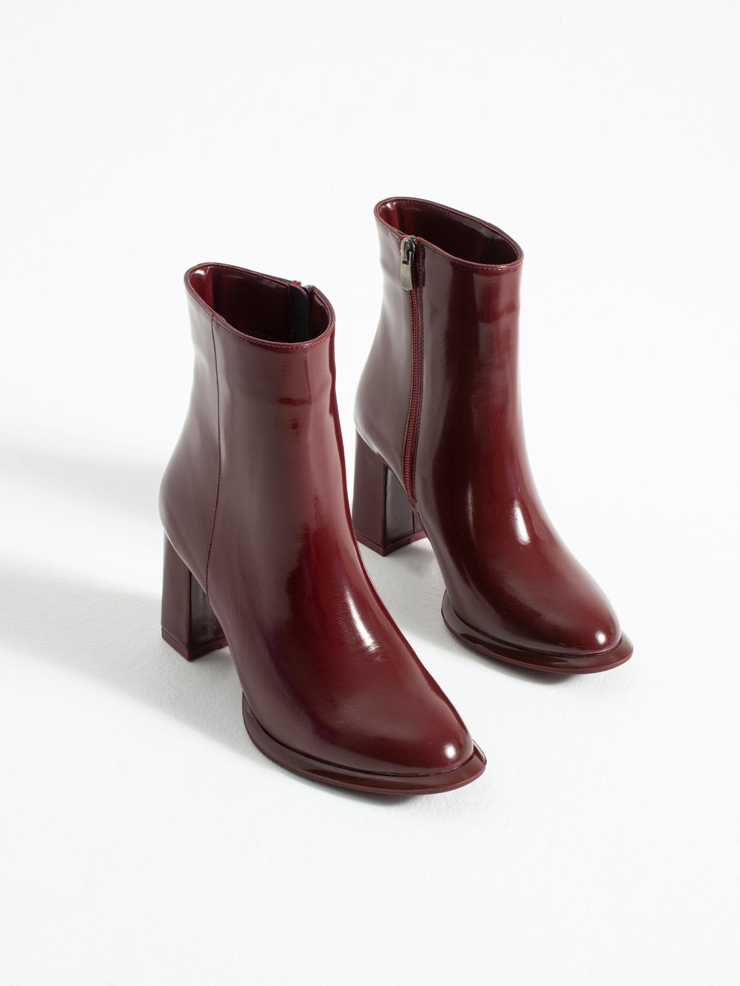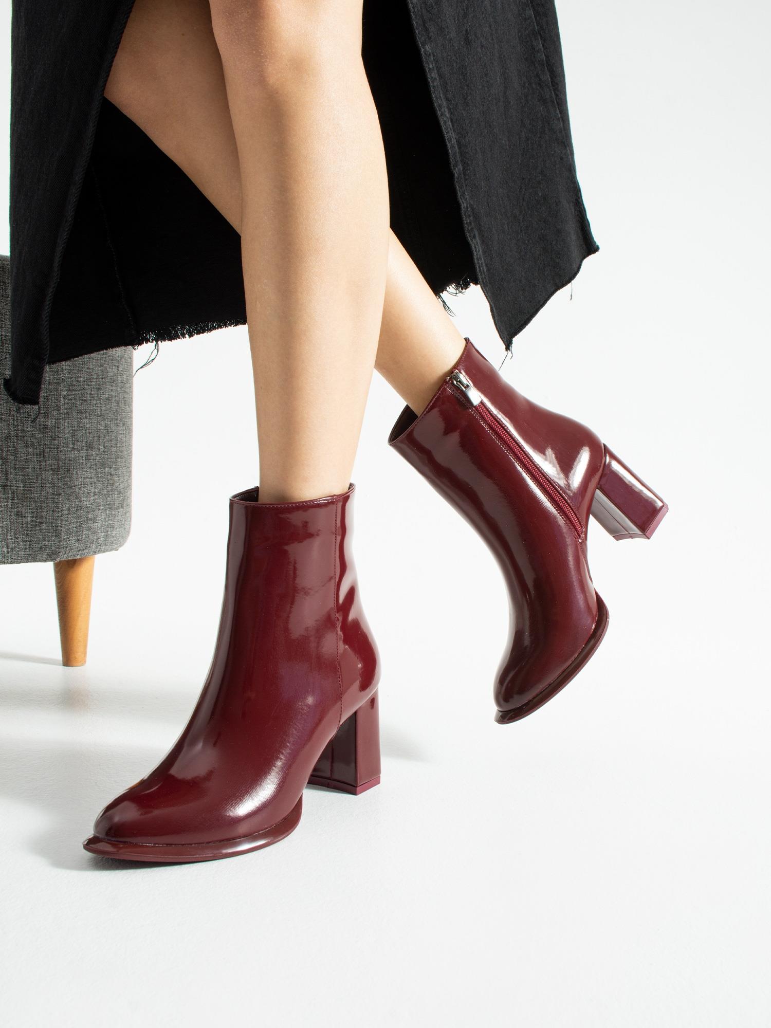 Modern şıklığın vazgeçilmezi parlak rugan kısa bot. Kalın topuğu sayesinde rahat yürüyüş sağlar, özgün tasarımıyla stilinize zarafet ve güçlü bir duruş katar.