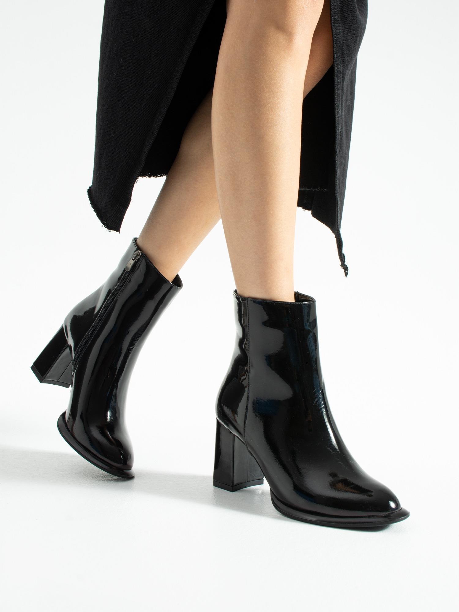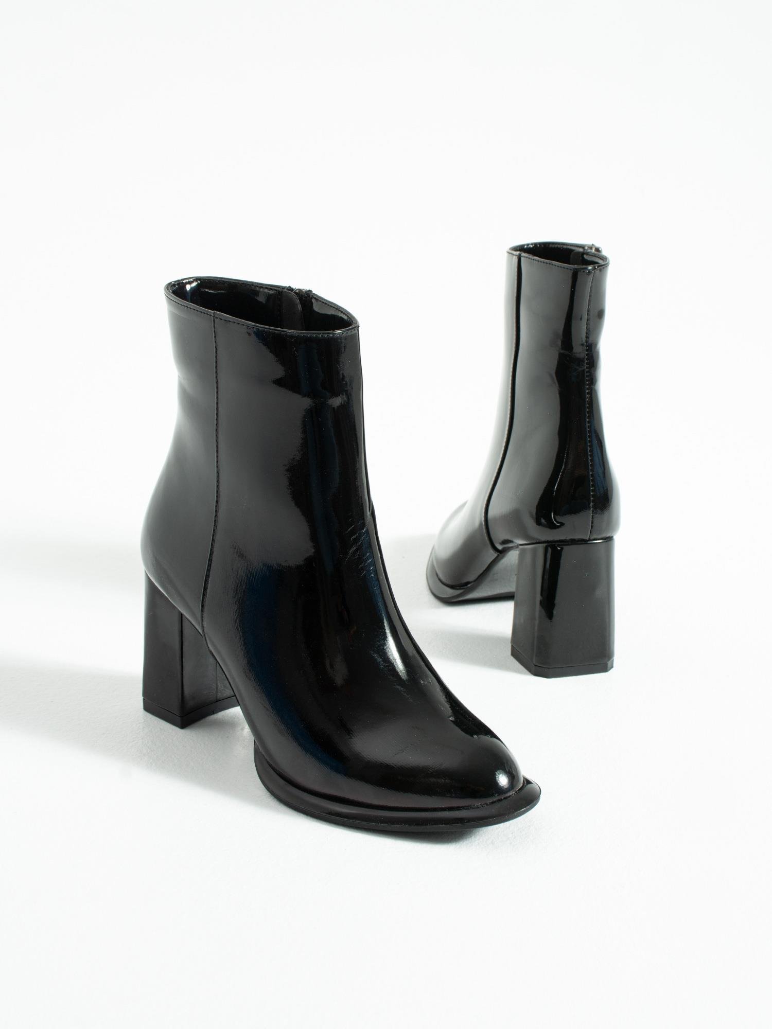 Modern şıklığın vazgeçilmezi parlak rugan kısa bot. Kalın topuğu sayesinde rahat yürüyüş sağlar, özgün tasarımıyla stilinize zarafet ve güçlü bir duruş katar.