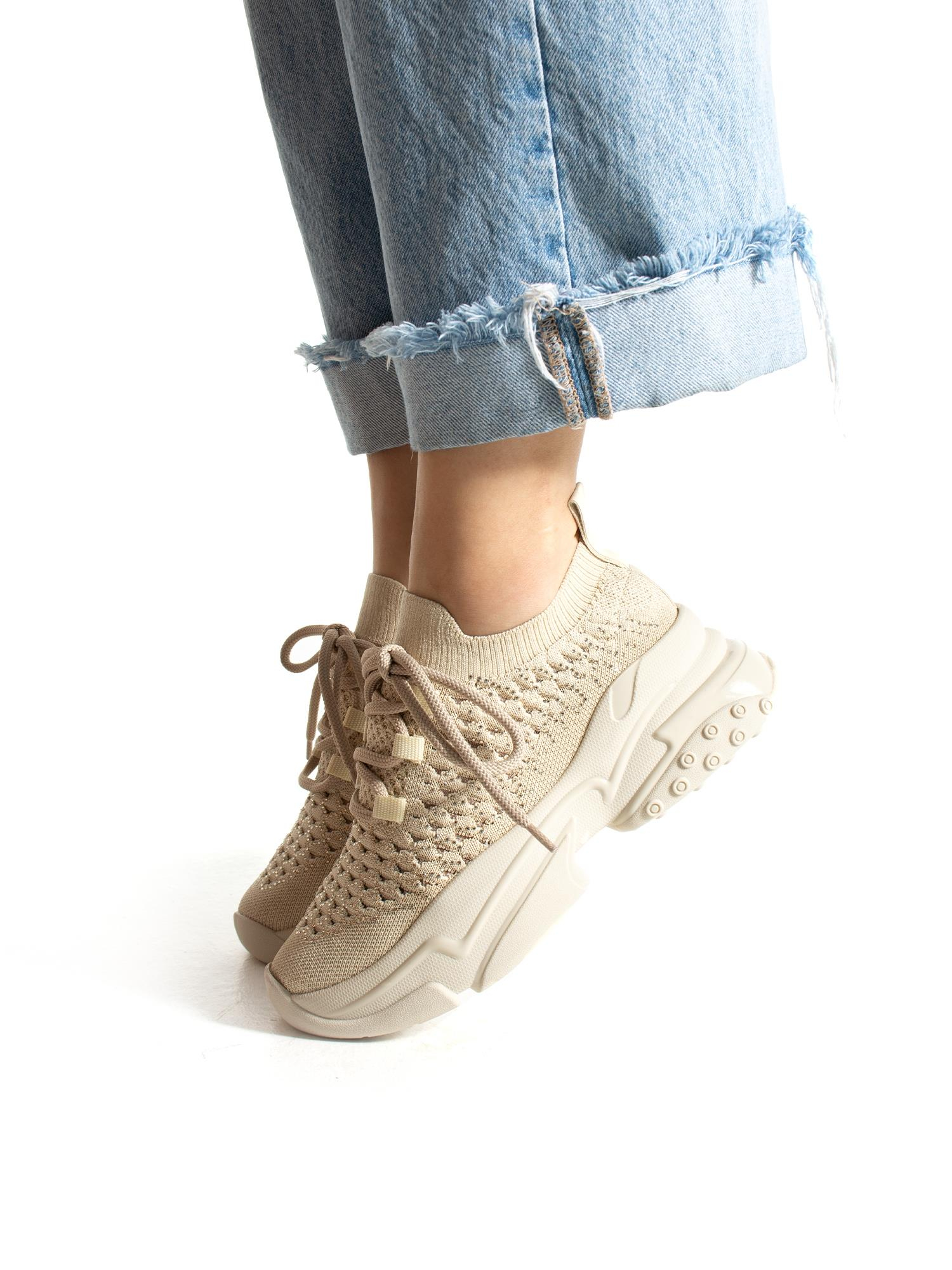 Hafif, esnek ve nefes alabilen yapısıyla gün boyu konfor sunan bu şık sneaker, taş detaylarıyla modern bir görünüm sağlıyor.