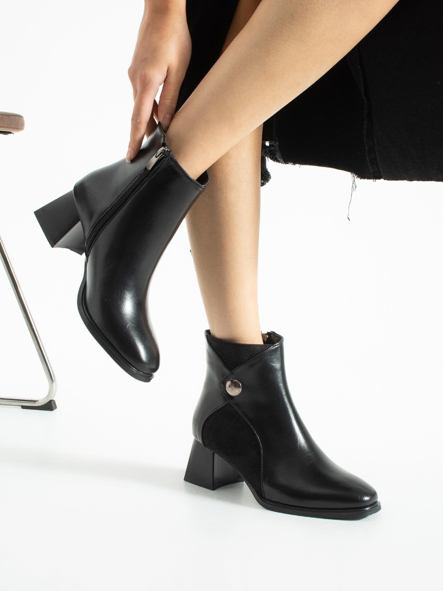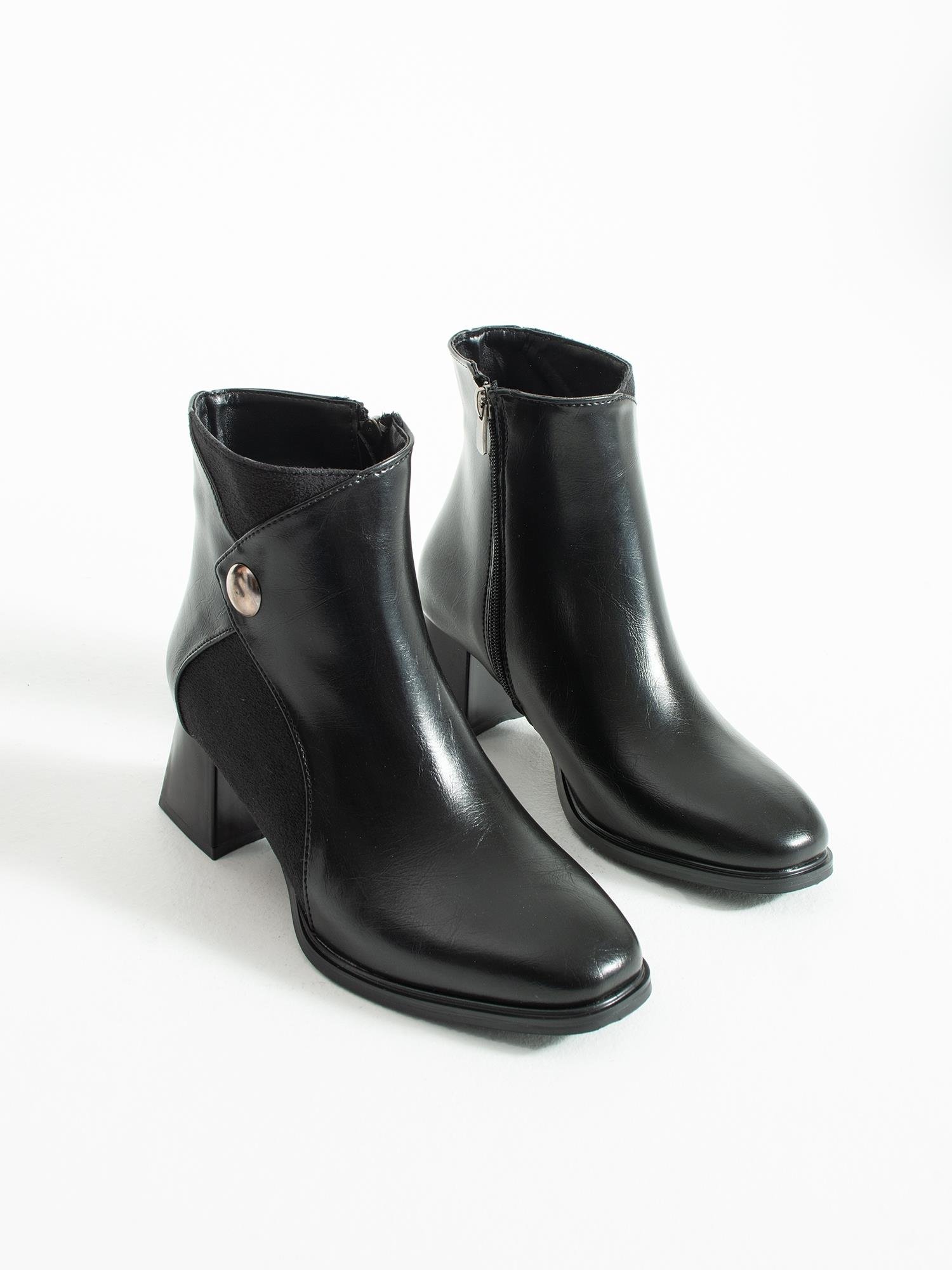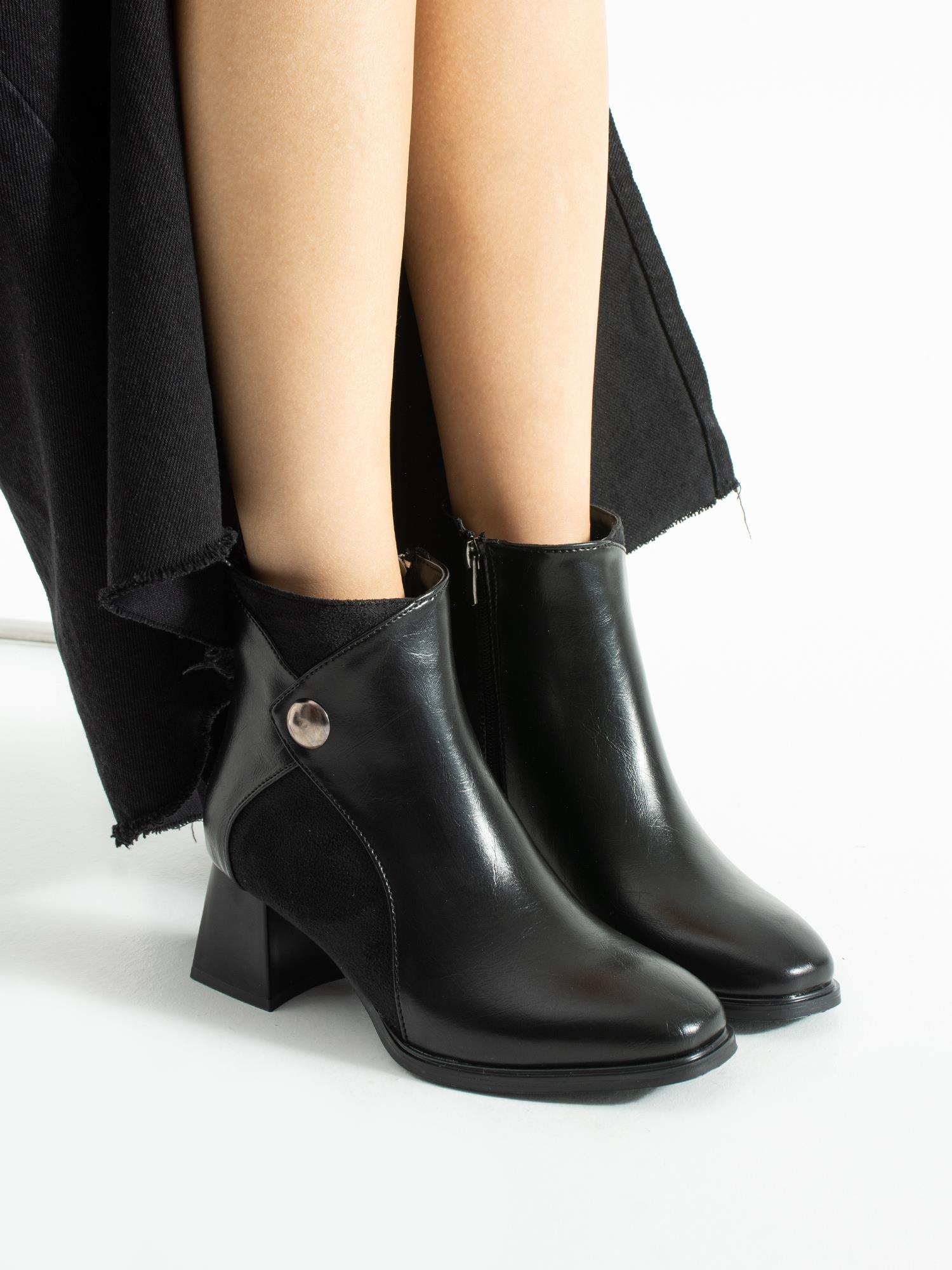 Modern çizgilerle tasarlanmış zarif topuklu kısa bot. Yan düğme detayı, zarif formu ve rahat kalıbıyla şehir şıklığının vazgeçilmezi