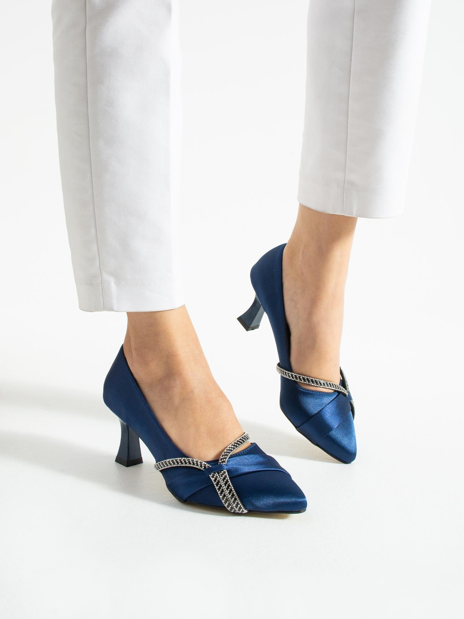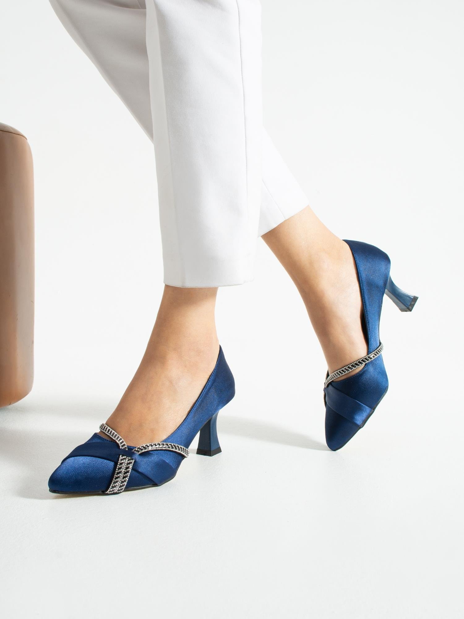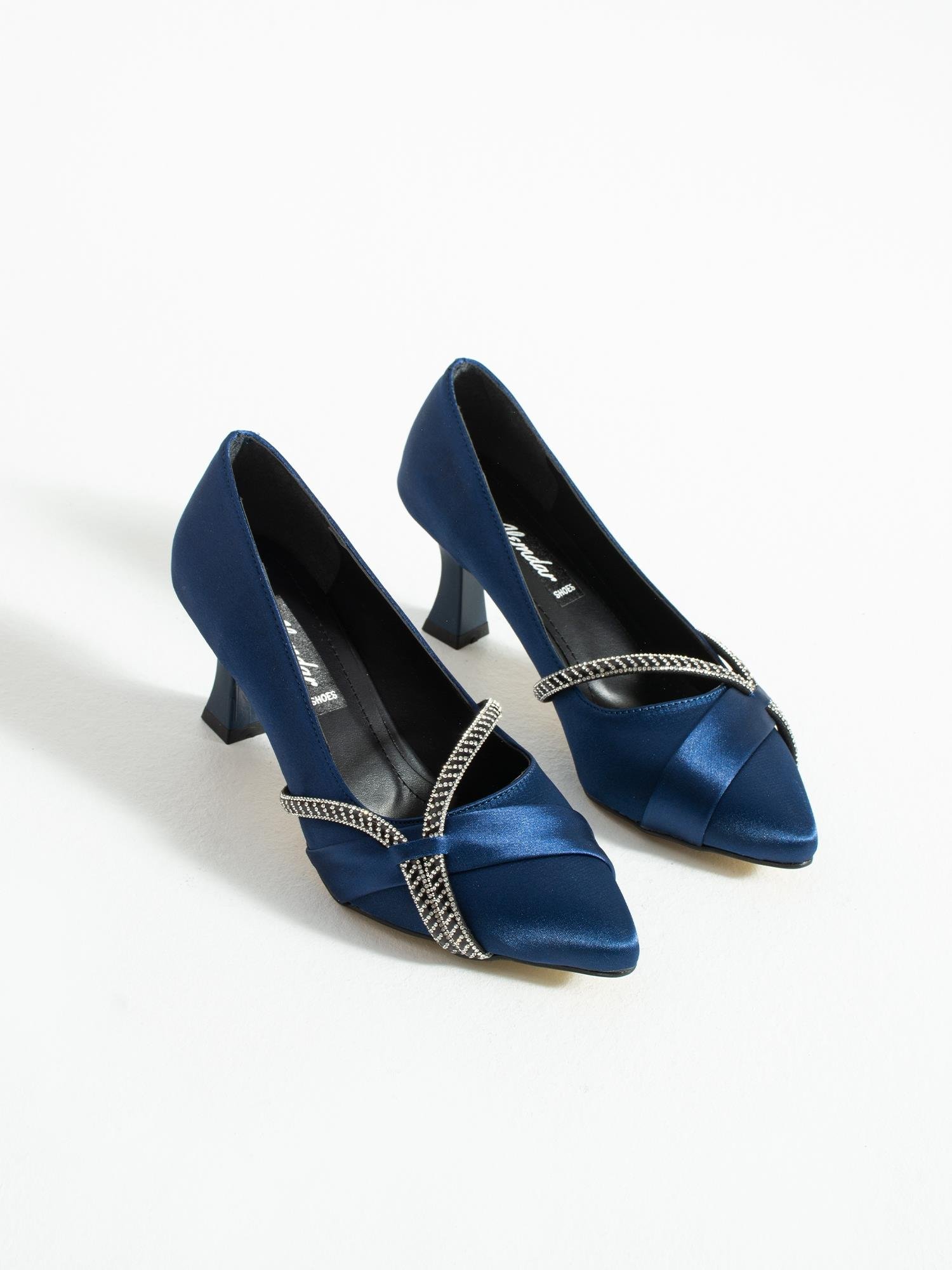 VELOX Lacivert Saten Taş Detay Topuklu Kadın Ayakkabı (VELOX-LACİSATEN)